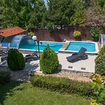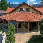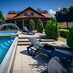 Вилла Alomkert Vendeghaz предлагает личный бассейн, 7 спален, а также террасу, откуда открывается вид на сад. В 4 км гостей ожидает Szarvas Botanical Garden.